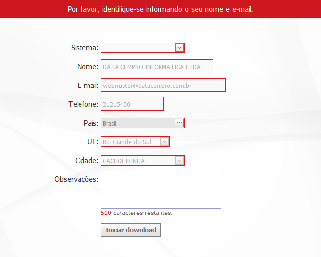 2) Informe seu endereço de e-mail, nome e clique no botão [Iniciar download].